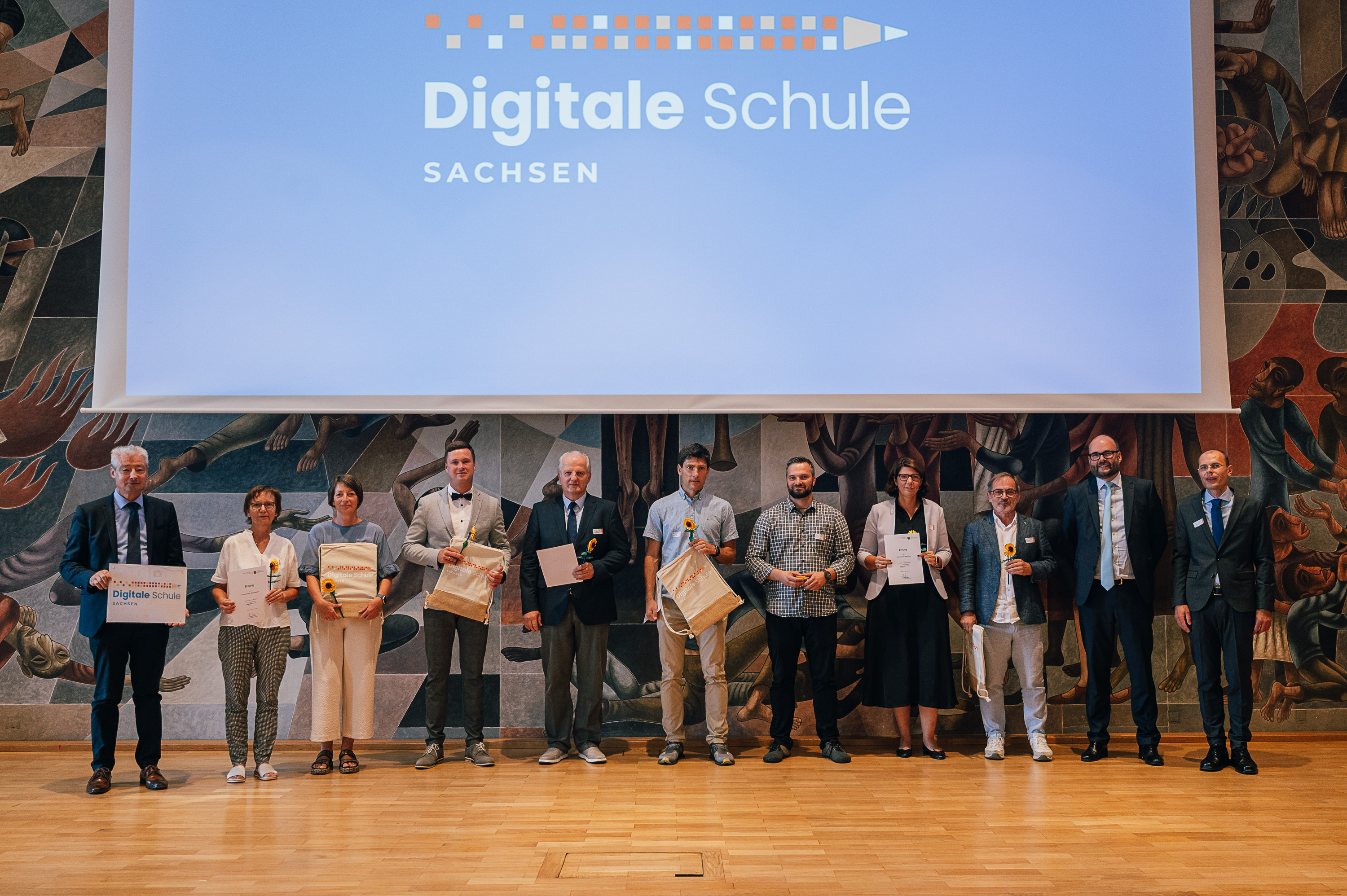 Insgesamt 39 sächsische Schulen wurden am 26. August 2024 von Kultusminister Christian Piwarz in der Dreikönigskirche Dresden als "Digitale Schule Sachsen" ausgezeichnet. Auch unser Gymnasium erhielt für die Region Westsachsen diese Auszeichnung. |