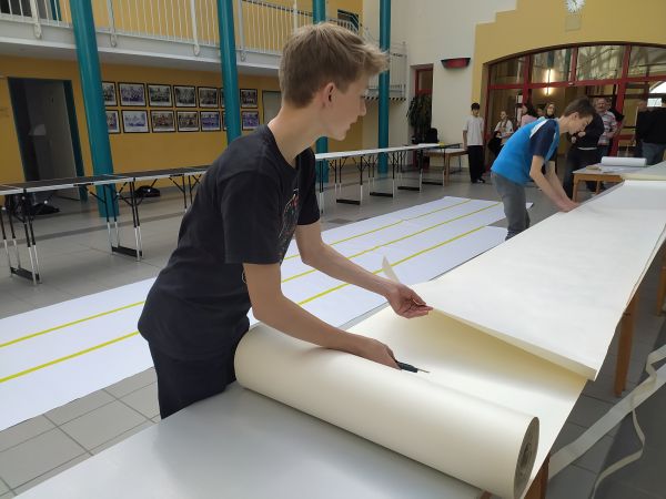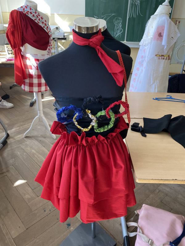 Auch am zweiten Tag zeigten die Schülerinnen und Schüler großes Interesse daran, ihre Ideen erfolgreich umzusetzen. In vielen Projekten begannen heute erst richtige Ideen zu entstehen. Jedoch konnten auch die Projekte, die gestern erfolgreich starteten, weiterhin tolle Ideen mit einbringen. Dementsprechend toll sahen heute die verschiedenen Produkte aus, wie die schönen Kleider aus dem Mode-Projekt, die außergewöhnlichen Vasen aus Kunst, lebendige Figuren aus dem Comic Asterix und Obelix und vielem mehr. Auch unsere ukrainischen Schülerinnen und Schüler nehmen an den Projekten teil. Mykolai sagt, dass er es sehr cool findet und dass er zum ersten Mal gesehen hat, wie man aus Pappe Kleider näht. (Aurelia, Ronja) |