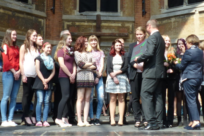 Hurra - wir haben es geschafft. Am 23. Mai 2016 konnten wir voller Stolz einen der drei Hauptpreise des Sächsischen Schulpreises - dotiert mit 4.000 € - in Empfang nehmen. Überreicht wurde der Preis durch die Staatsministerin für Kultus, Frau Kurth.